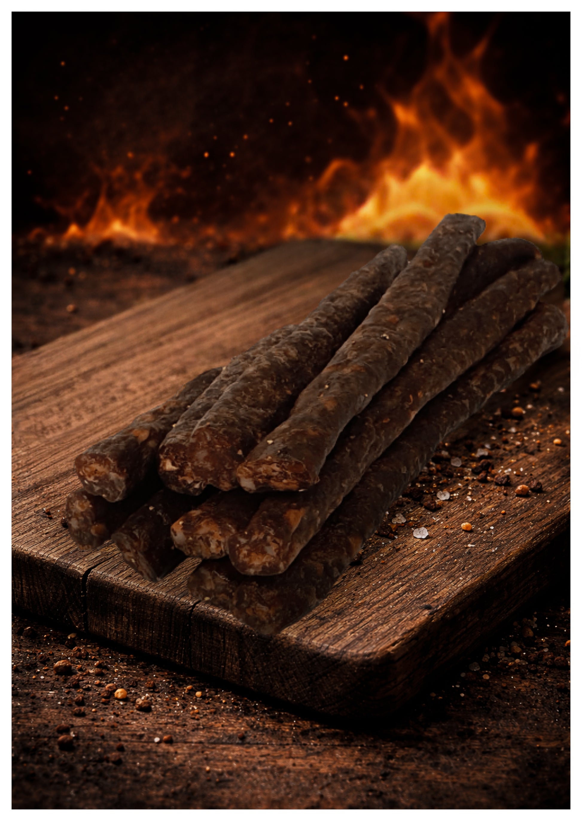 🌱 Qualidade Premium – Produzido com carne selecionada de vaca e borrego, seguindo método tradicional sul-africano.